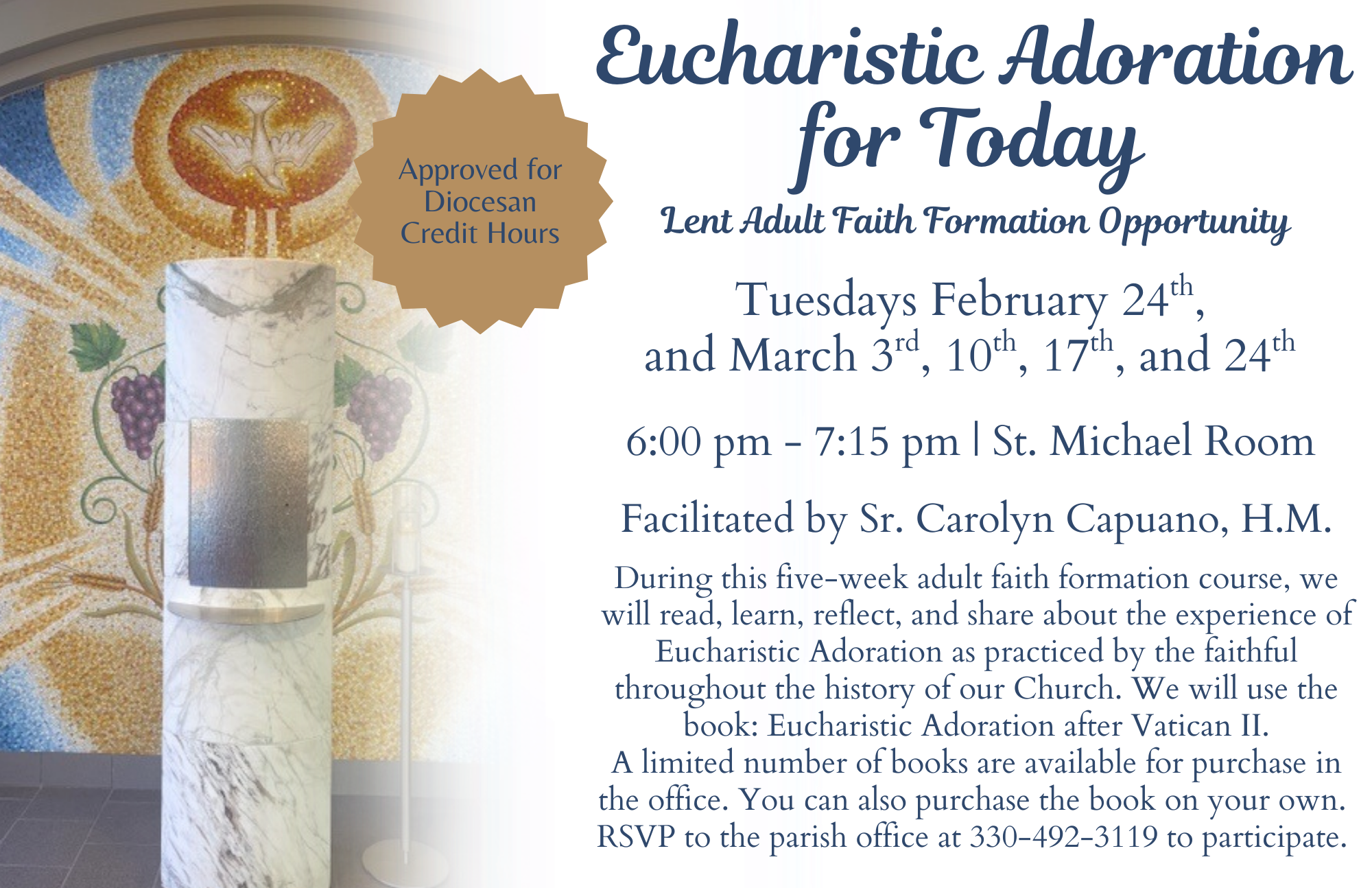 Wednesday Masses at 8:00 AM and 6:00 PM.